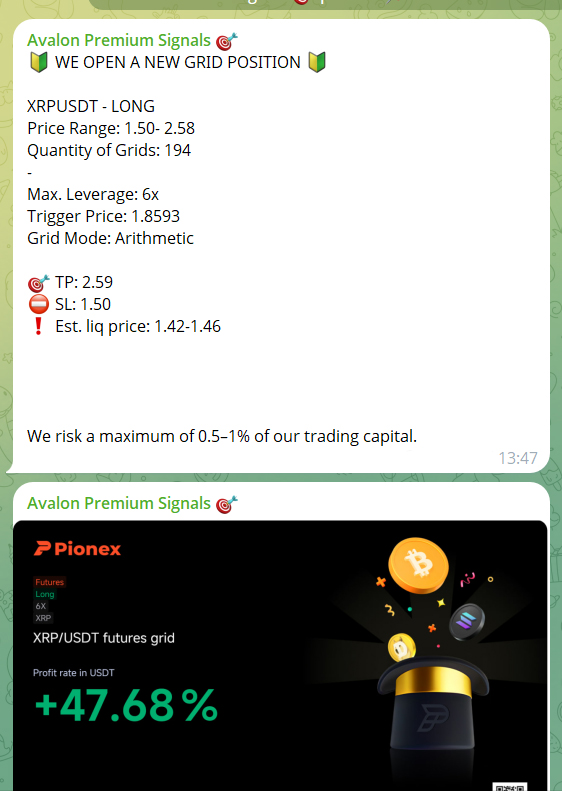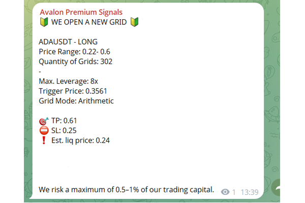 Our grid strategy signals are based on precise market analysis and are deployed exclusively during clearly defined market phases. The following information is shared via Telegram: