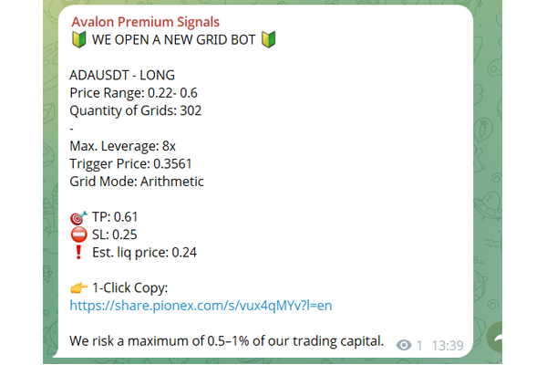 Unsere Gruppe ist auf börsenbezogene Grid- und DCA-Bot-Signale spezialisiert. Ergänzend werden gelegentlich auch klassische Trading-Setups geteilt.