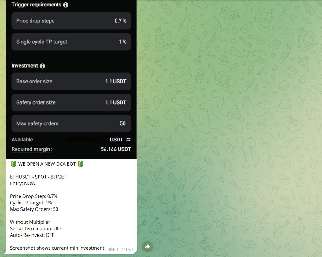 Bei DCA Spot Bots liegt das Mindestinvestment in der Regel bei etwa 50–100 USD, abhängig von der jeweiligen Börse und den gewählten Einstellungen.